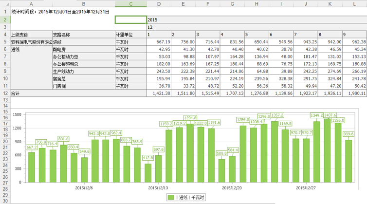 如图所示,每月,每周,每天的能耗数据都会进行记录,方便我们随时查询,查询时还可根据需要以日、月、年为单位生成折线图或准状图,方便我们清晰直观的看出能耗的变化趋势。